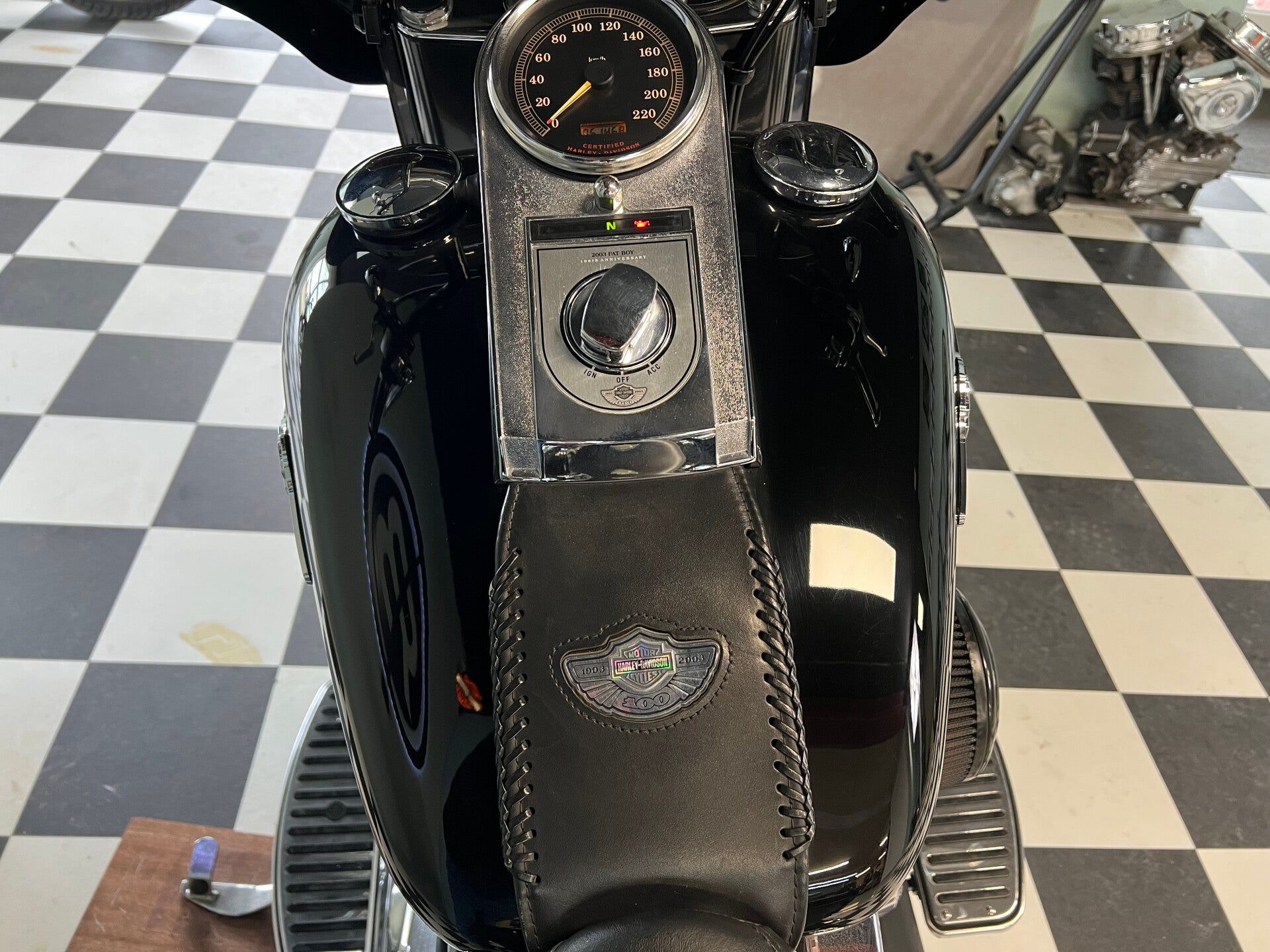 Zeer nette en goed onderhouden Harley-Davidson Anniversary Fat Boy. De motor verkeert in mooie staat en is altijd netjes onderhouden. Zelfs de originele Anniversary sleutel is nog aanwezig.