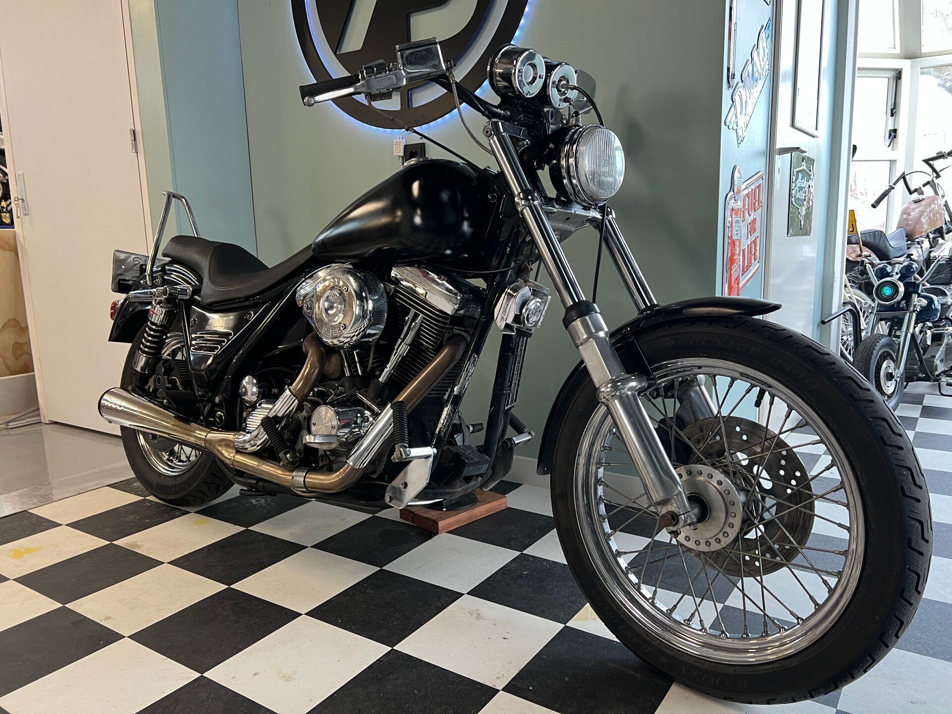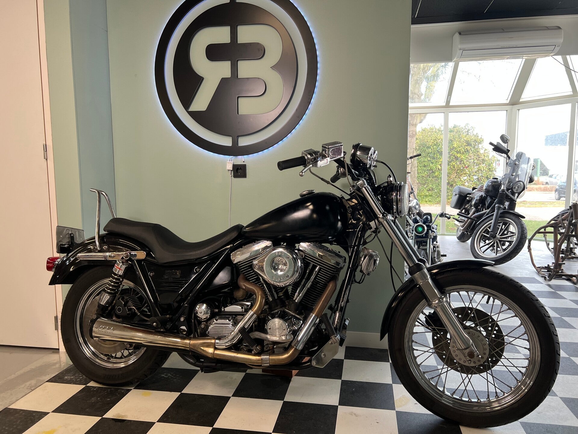 Leuke Harley-Davidson FXRS met een aantal mooie upgrades. De motor is onder andere voorzien van een SuperTrapp uitlaat, S&S carburateur en Arlen Ness side covers.